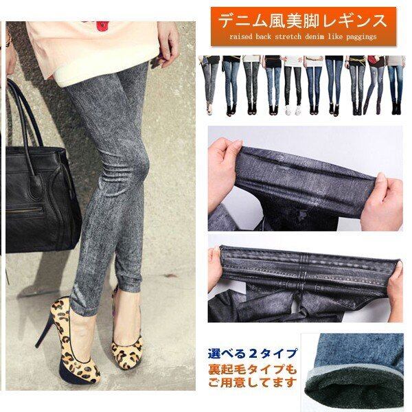 まるでデニムのようなデザインのレギンス。