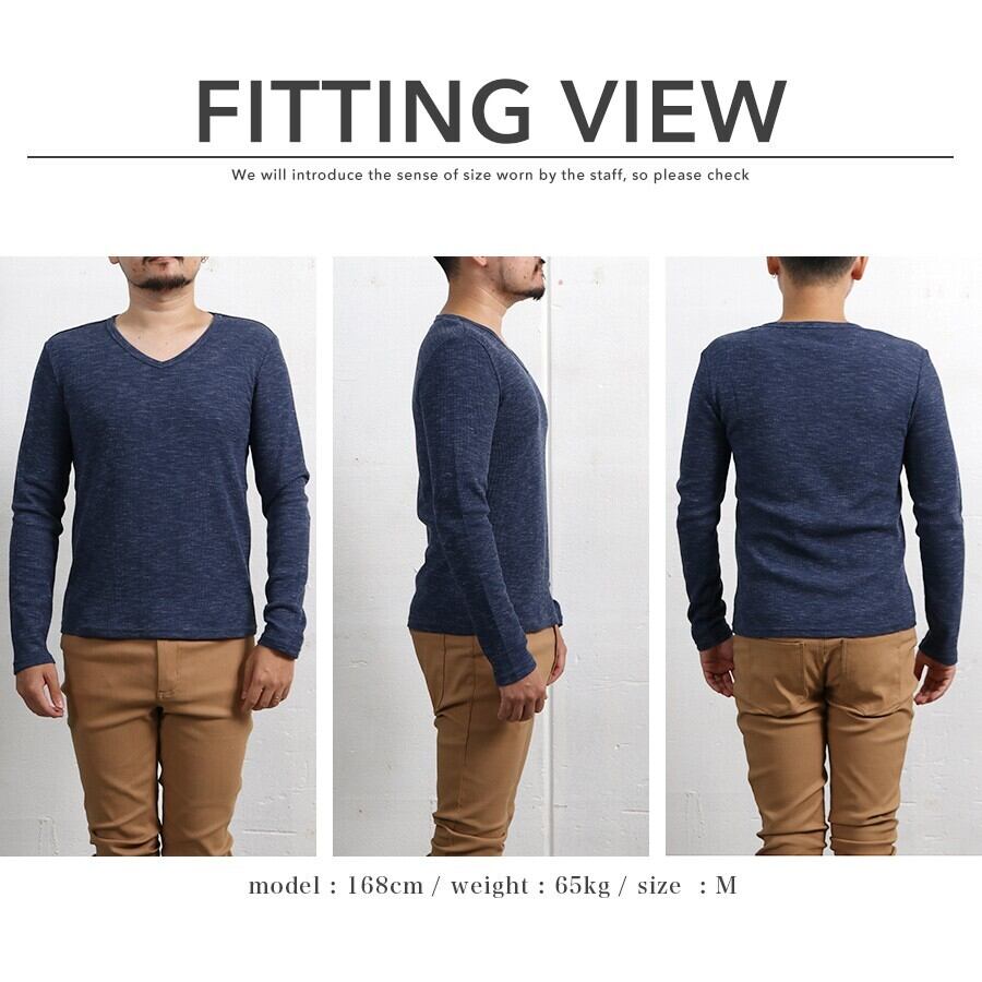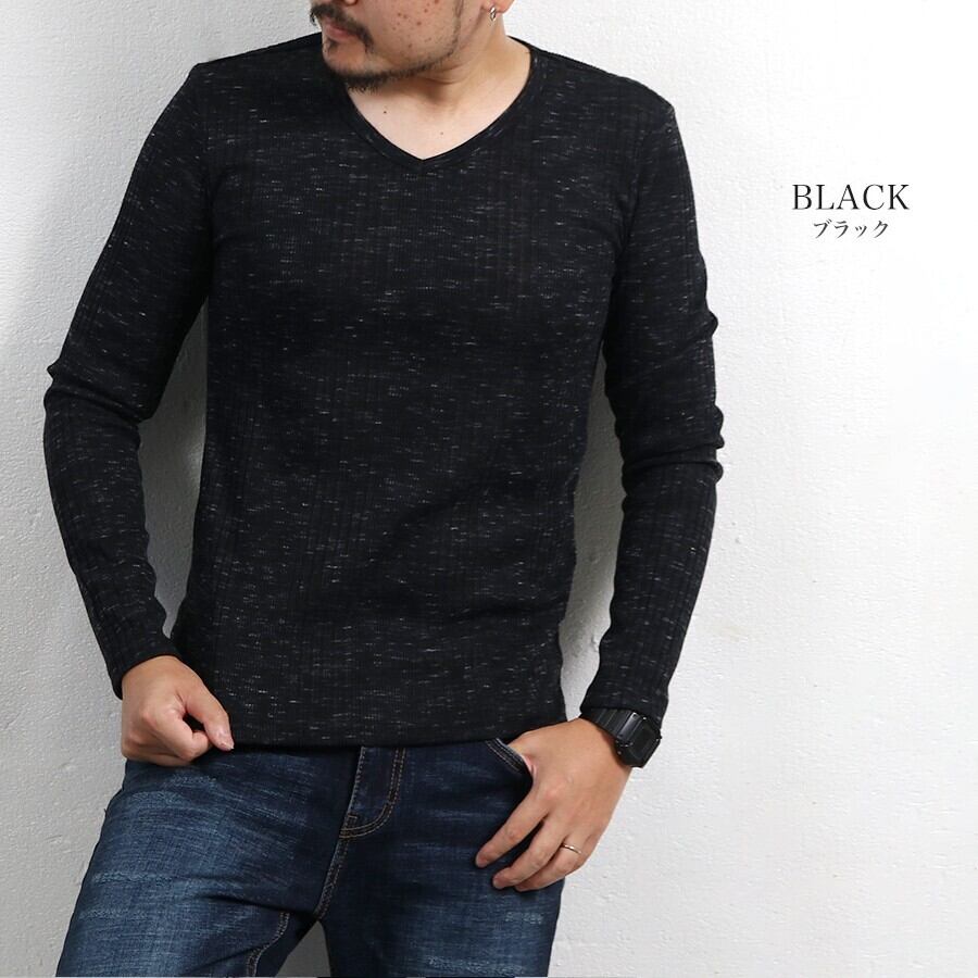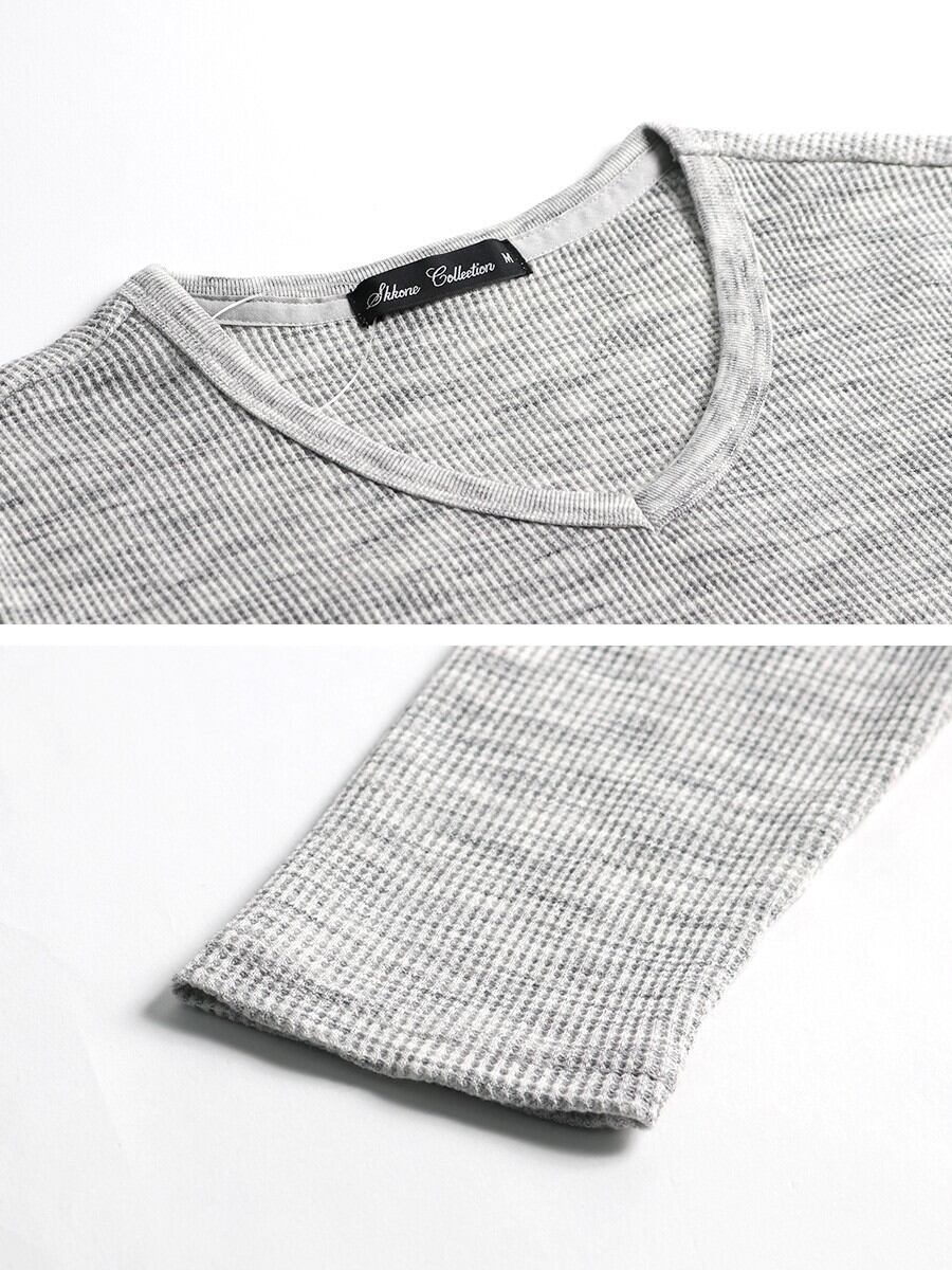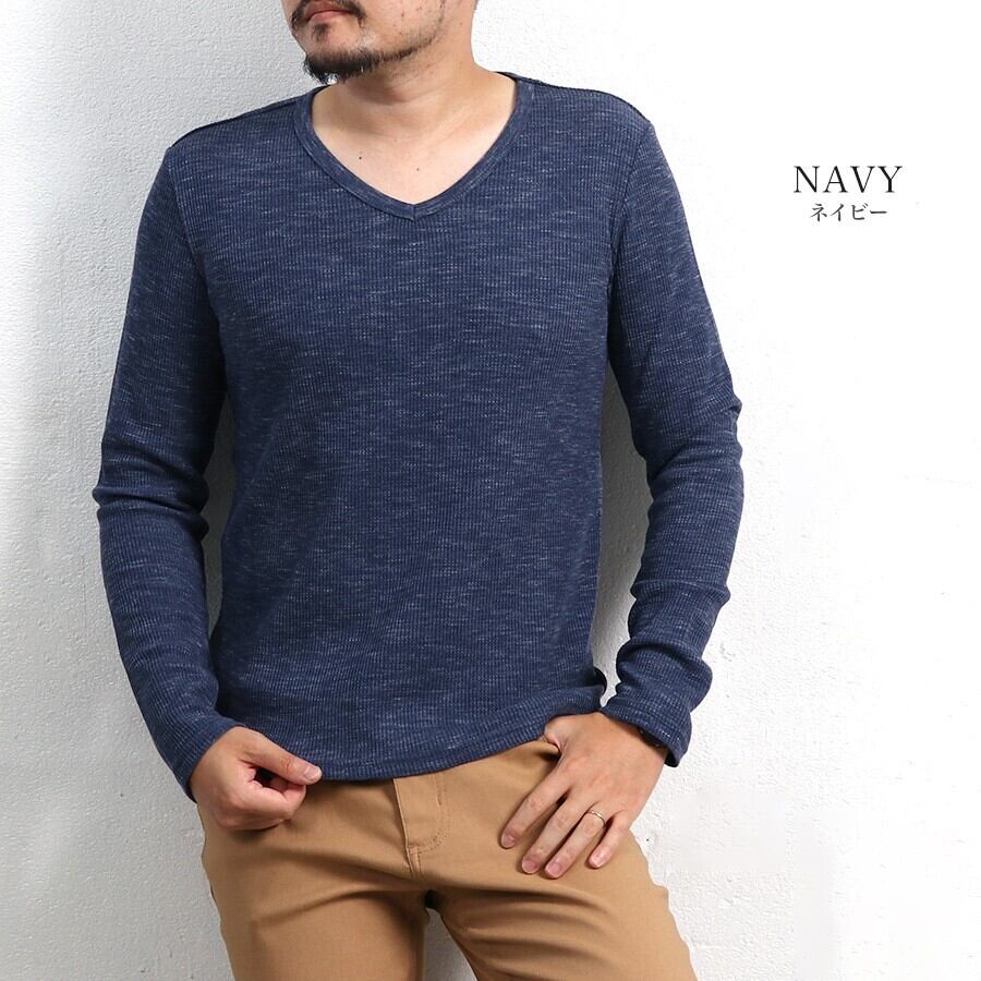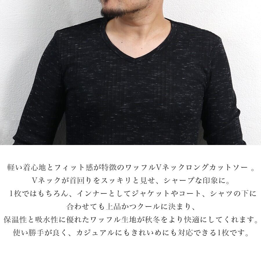 Tシャツ ワッフル テレコ Vネック ロング 秋 冬 メンズ 長袖 ロンT 大人 無地 カジュアル