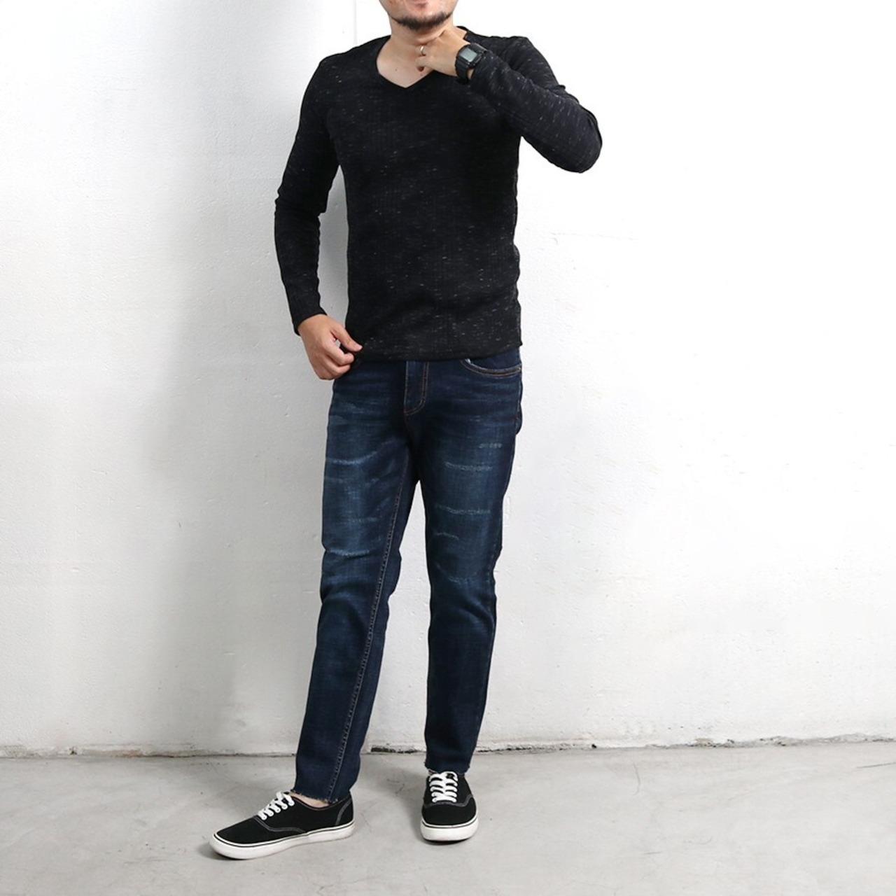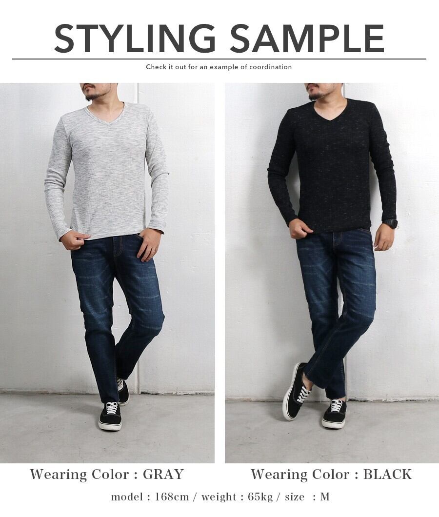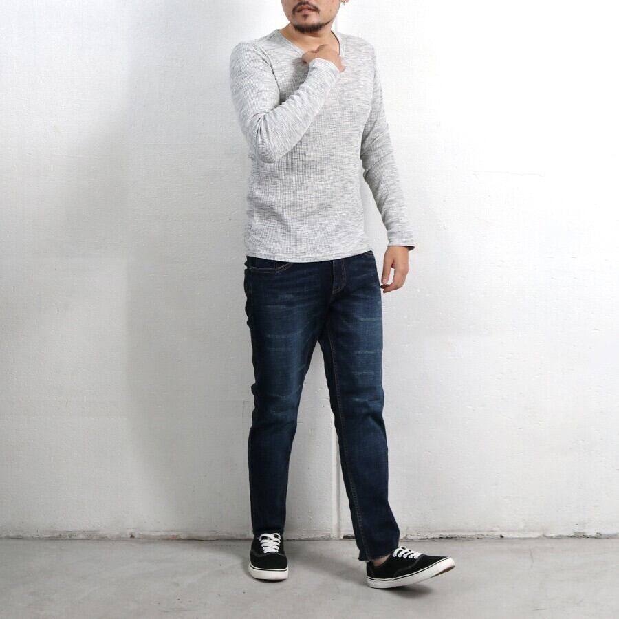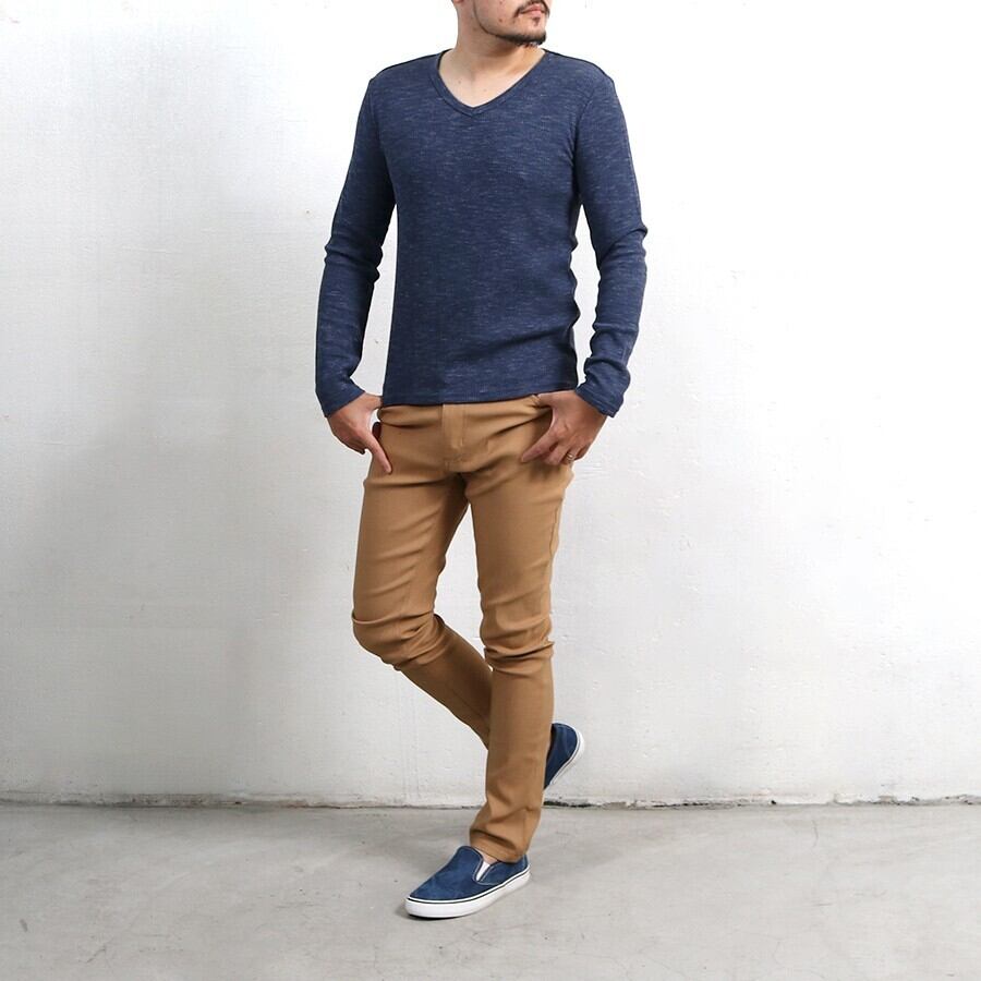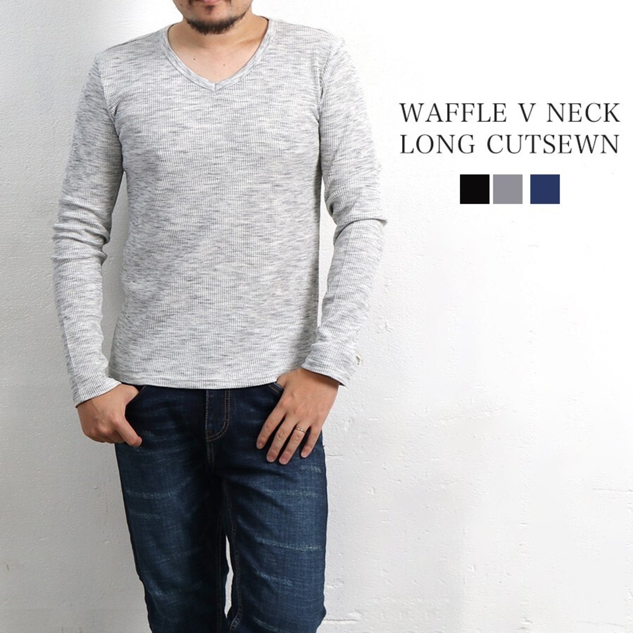 Tシャツ ワッフル テレコ Vネック ロング 秋 冬 メンズ 長袖 ロンT 大人 無地 カジュアル