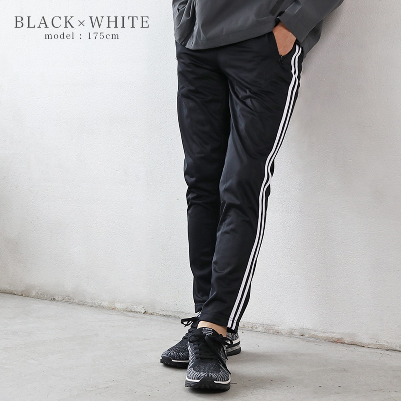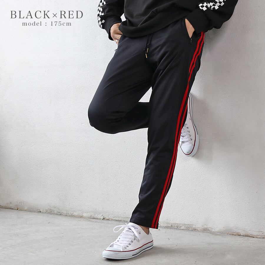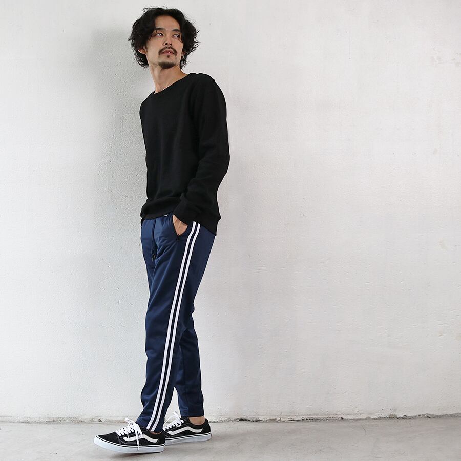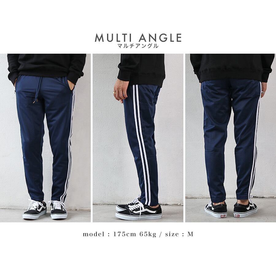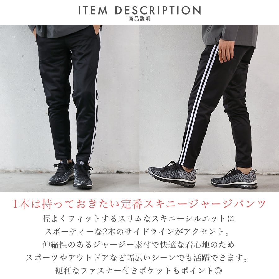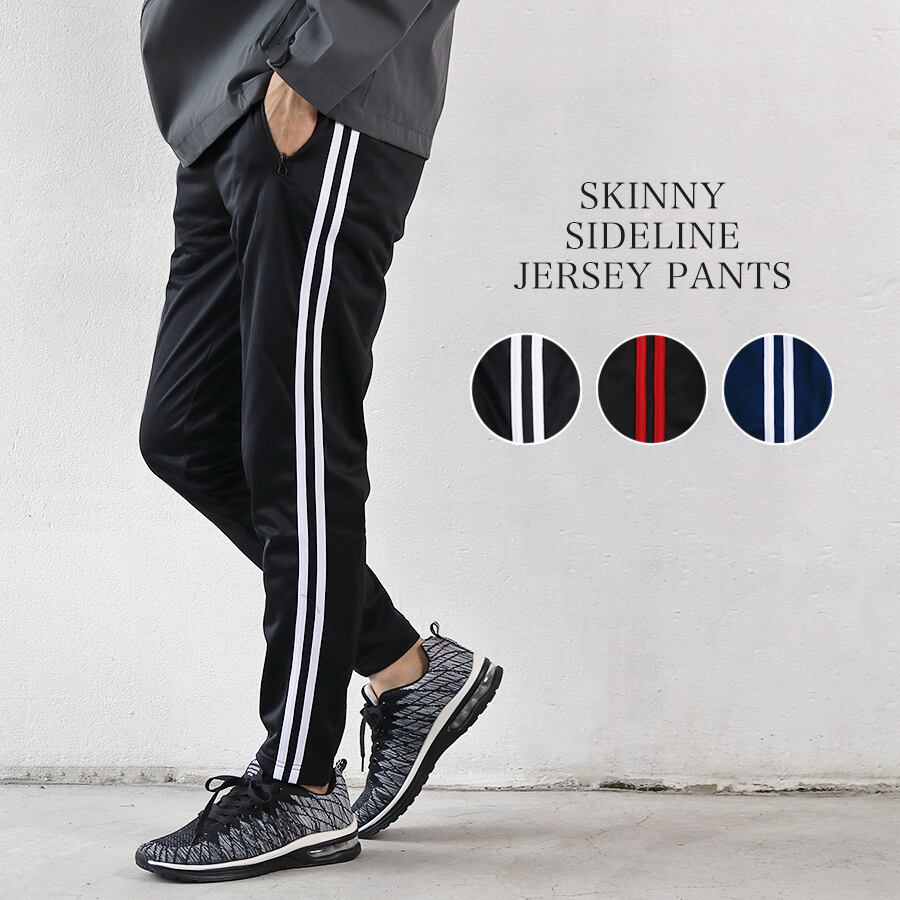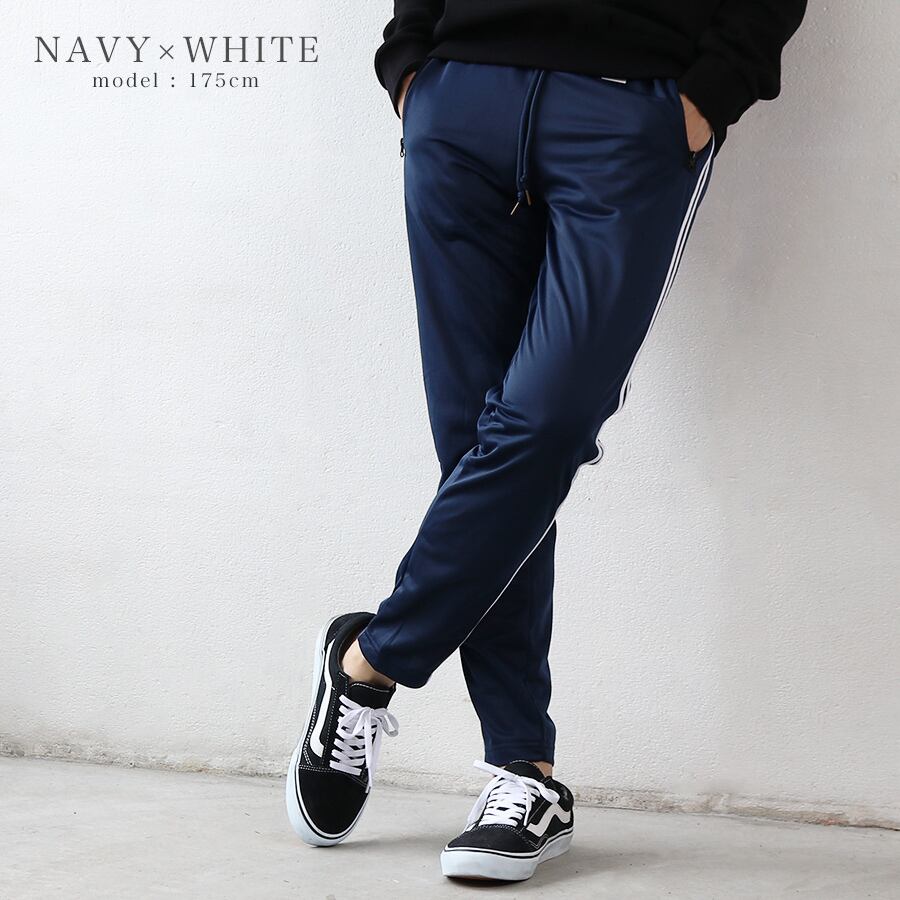 ジャージパンツ メンズ ボトムス スリム スキニー 細身 サイドライン 黒 紺 トラックパンツ カジュアル スポーツ 韓国系ファッション メール便