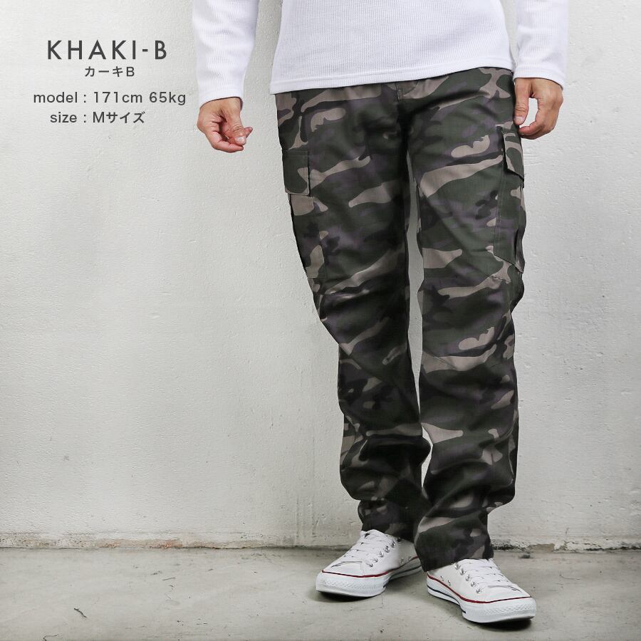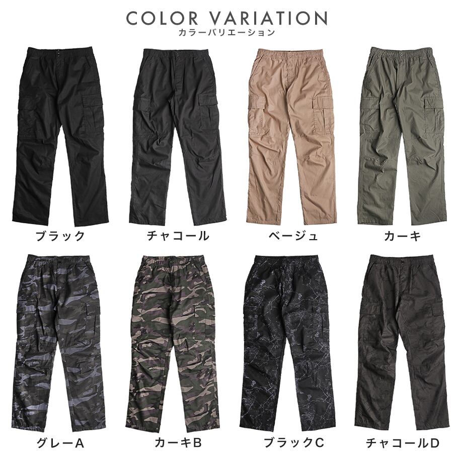 カーゴパンツ メンズ パンツ ロング ボトムス ズボン 無地 迷彩 カモフラ イージー ミリタリー ワーク カジュアル 作業着 送料無料