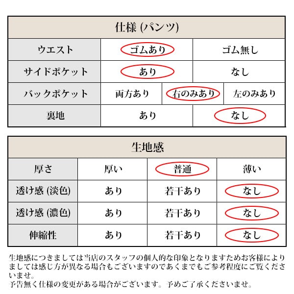 【L】ウエスト78〜100/ヒップ112/股上29/股下78/ワタリ34/裾幅21.5