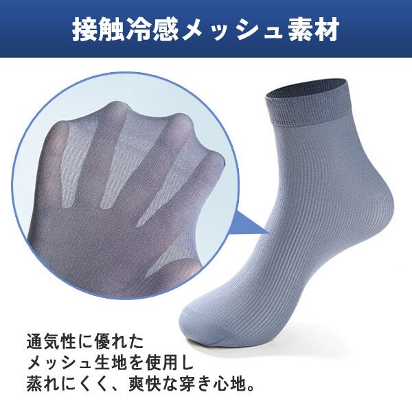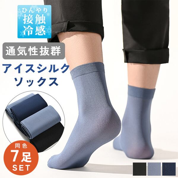 メッシュソックス 靴下 メンズ 7足 セット 通気性 無地 接触冷感 アイスシルク 耐久性 伸縮性 伝線しにくい 蒸れない クルー丈 ビジネス 夏